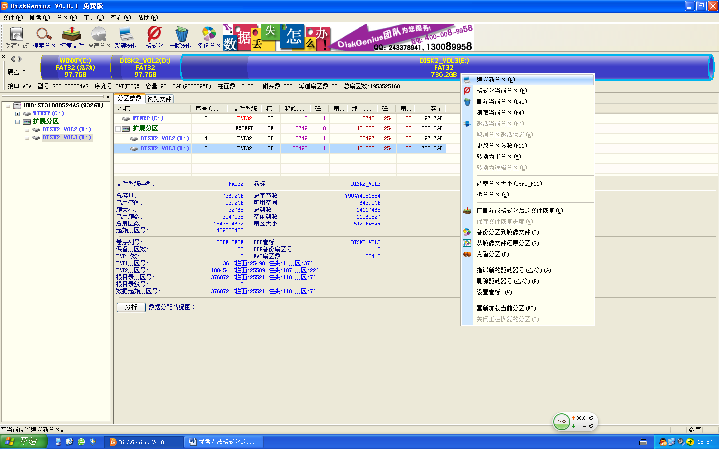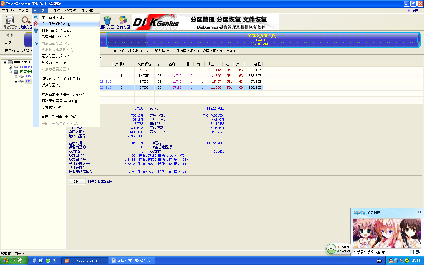 4.选择“分区”按钮à格式化当前分区